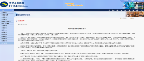 ● 本文《香港工業總會:丙爾金鍍金無毒無氰是誤導》來自合航集團官網,歡迎轉載.● 鏈接地址:http://www.zyxhl.com.cnhttp://www.zyxhl.com.cn/2016.html