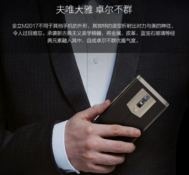 在產品布局上,金立從沒跳入低價競爭的泥潭,反而一直在布局中端和高端市場,特別是最高端的商務市場。2017年即將到來之際,金立M2017發布,獲著名導演馮小剛和夫人徐帆攜手代言,再一次拔高了我們對這款高端商務旗艦的期待。